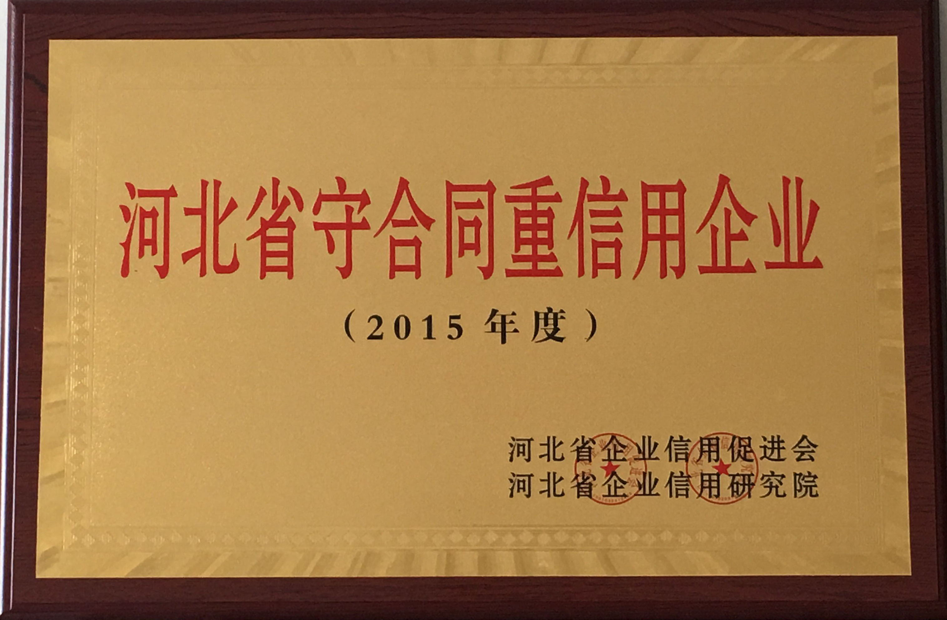 根據河北省文明辦、河北省企業信用促進會印發的《“善行河北·誠信企業”主題實踐活動實施方案》,河北省企業信用促進會、河北省企業信用研究院對“守合同重信用”企業進行認定,我公司被授予2015年度河北省守合同重信用企業稱號。