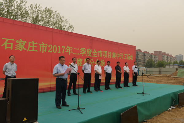 根據石家莊市委、市政府統一安排,鹿泉區于6月5日上午在我公司上莊項目現場舉辦了2017年第二季度項目集中開工活動。出席這次活動的有鹿泉區委、區政府、區人大、區政協及各部門、鄉鎮領導,12個參加集中開工活動的項目單位負責人,施工單位代表等共計200余人。在收看了石家莊市項目集中開工實況后,由副區長張森同志主持開始了鹿泉區集中開工活動,先后由上莊鎮黨委韓翔書記、我公司李華偉總經理、鹿泉區賈建文常務副區長分別進行了表態和發言,最后由區楊國芳書記宣布鹿泉區第二季度項目集中開工。