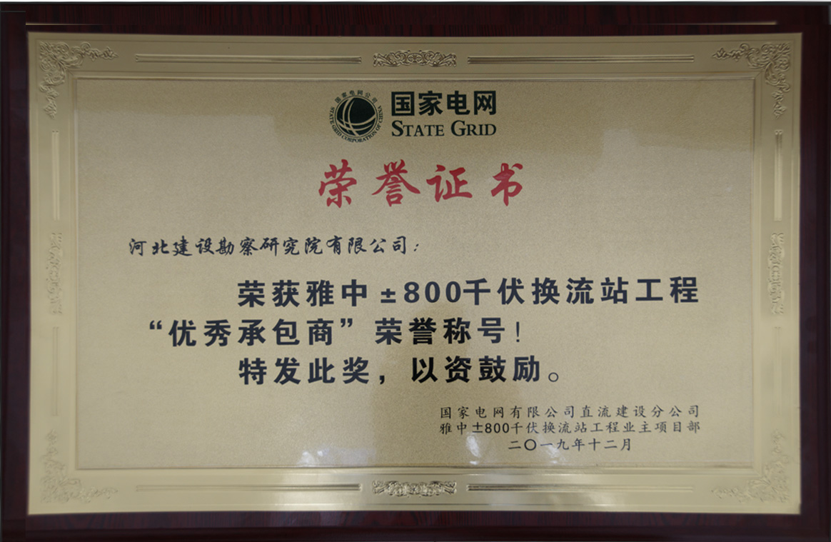 我公司雅中換流站項目獲業主“優秀承包商”榮譽稱號