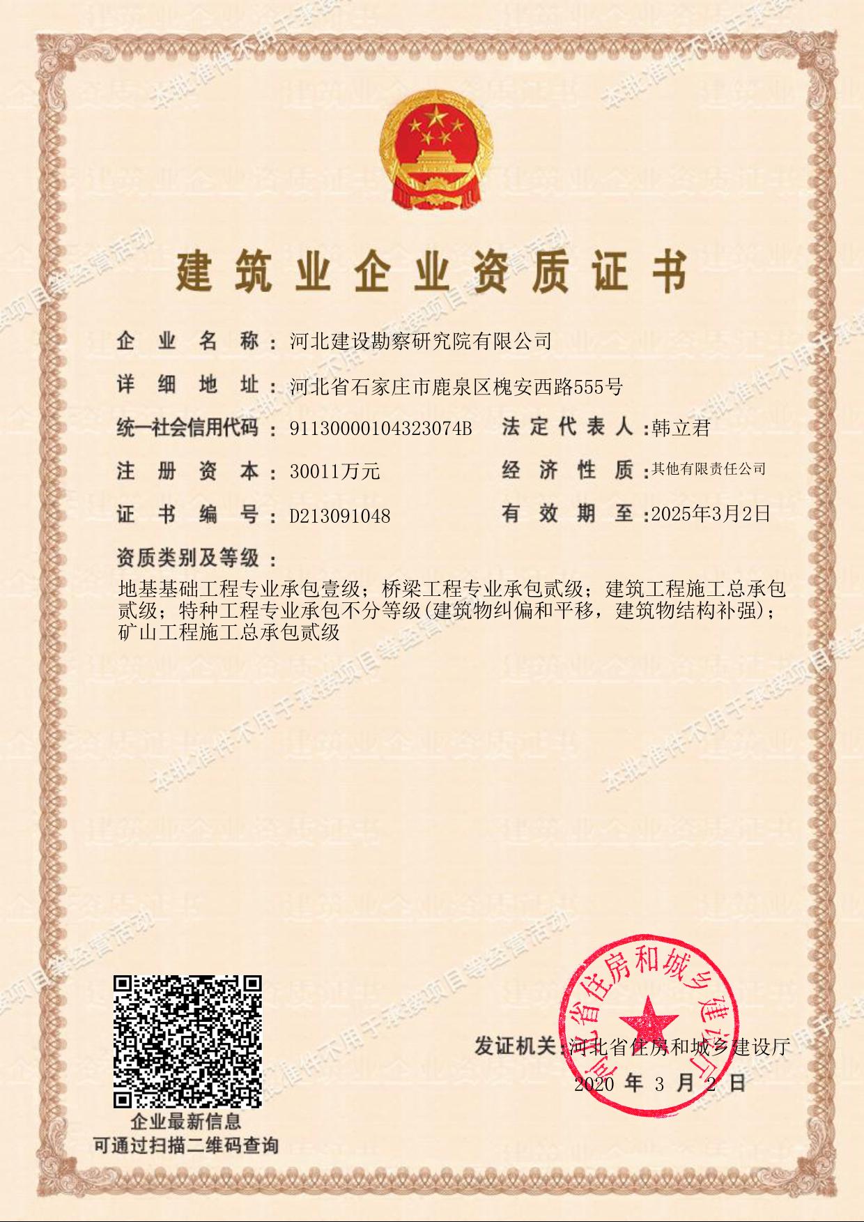 公司于2020年3月2日取得了建筑工程施工總承包貳級資質證書,可承擔下列建筑工程的施工:(1)高度100米以下的工業、民用建筑工程;(2)高度120米以下的構筑物工程;(3)建筑面積15萬平方米以下的建筑工程;(4)單跨跨度39米以下的建筑工程。
