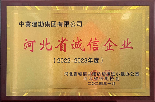 根據河北省信用協會文件“冀信協會字[2024]6號”文《關于公布2022-2023年度“河北省誠信企業”的通知》,我公司被河北省誠信共建活動推進小組辦公室和河北省信用協會評為“河北省誠信企業”。