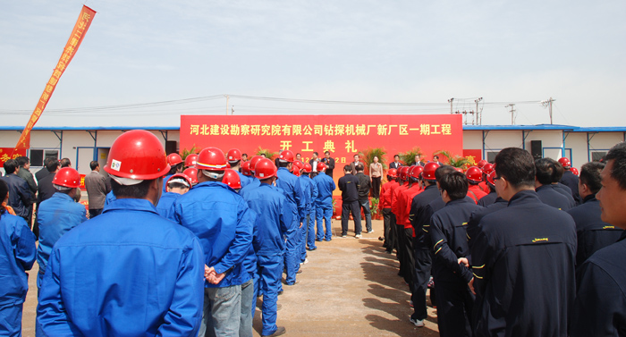 2012年4月12日,經過精心準備,河北建設勘察研究院有限公司鉆探機械廠新廠區一期工程開工典禮在石家莊裝備制造基地元氏區新廠區所在地隆重舉行。元氏縣委吳書記、陳縣長、縣委四大班子及元氏縣所屬十五個鄉鎮領導都到場出席,我公司領導齊總、李總親臨現場。齊總代表總公司致歡迎詞,元氏縣吳書記宣布開工,整個過程隆重熱烈,取得了很好的效果。此次開工典禮標志著新廠區進入實質性建設階段。相信在公司領導的正確領導下,通過施工單位、監理單位和籌建辦的共同努力,一定能夠保質保量順利完成一期建設項目,盡快投產交付使用,盡快產生投資回報。
