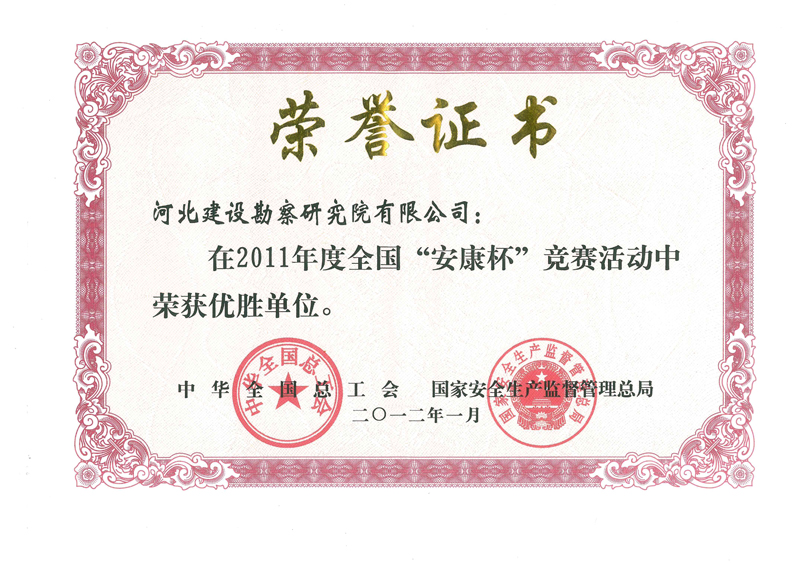 公司在2011年度“安康杯”競賽活動中,被中華全國總工會、國家安全生產監督管理總局評為優勝單位,這是我公司連續第八年獲此殊榮。